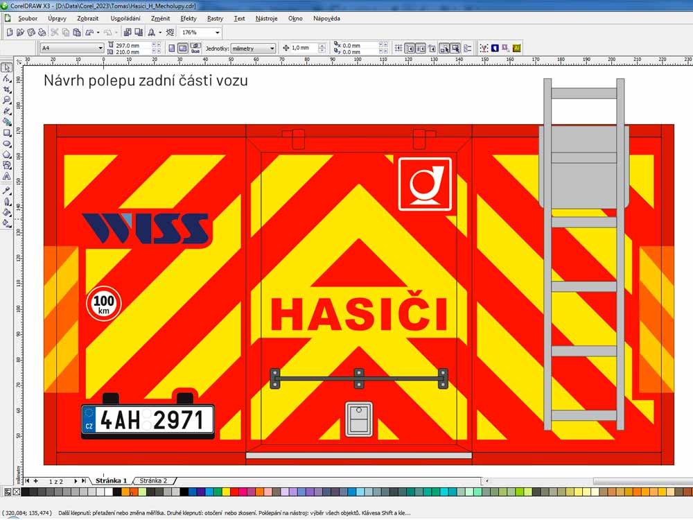 Řešíme nejen grafickou podobu ale především správné rozmístění a čitelnost prvků, použití certifikovaných a ověřených materiálů, reflexní fólie odpovídající určenému použití a dlouhou životnost v náročném zásahovém provozu.